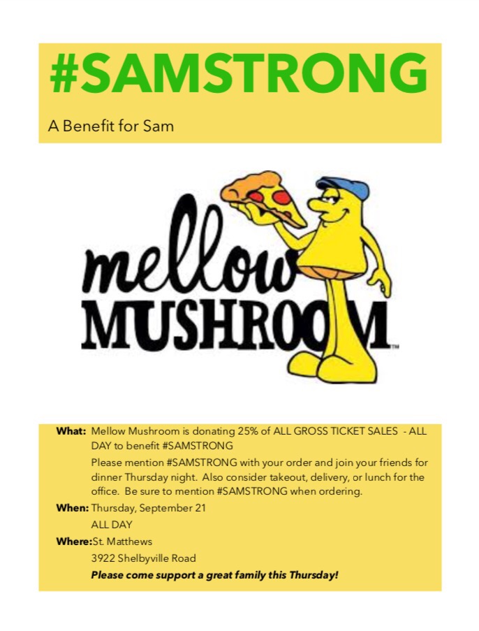 COR, NOR, lots of announcements. #Samstrong is happening 9/21 at Mellow Mushroom. Here’s the info: