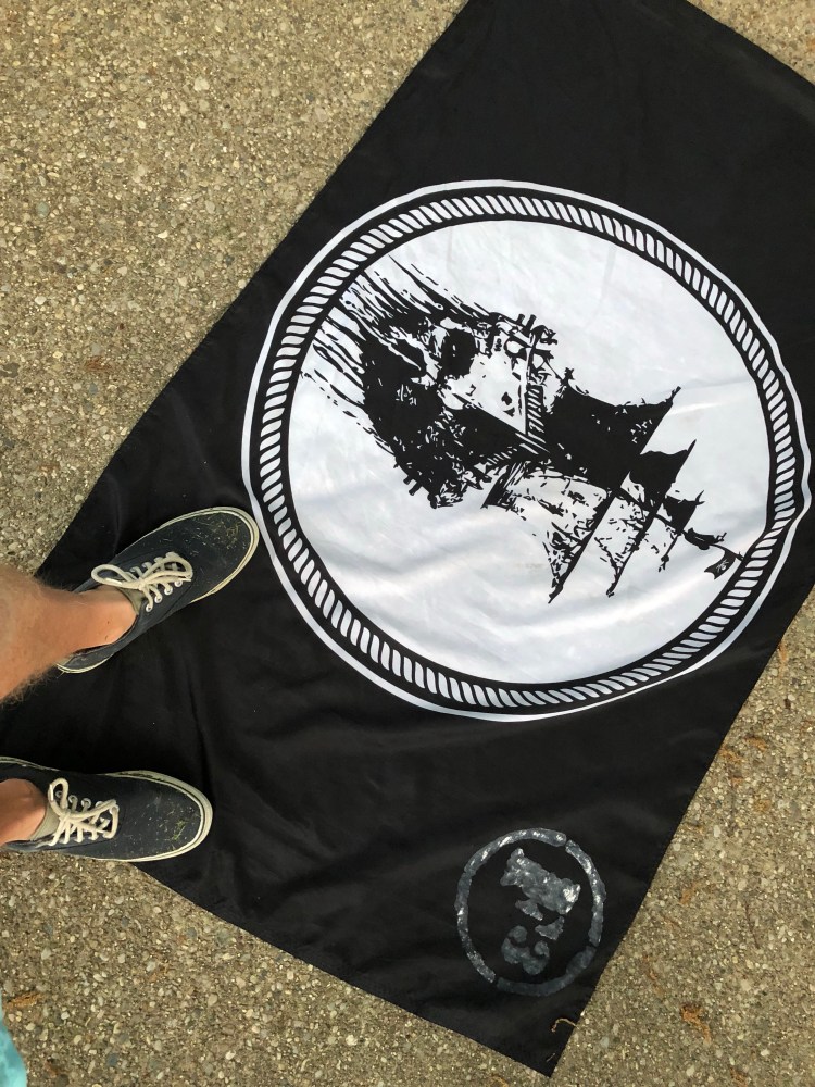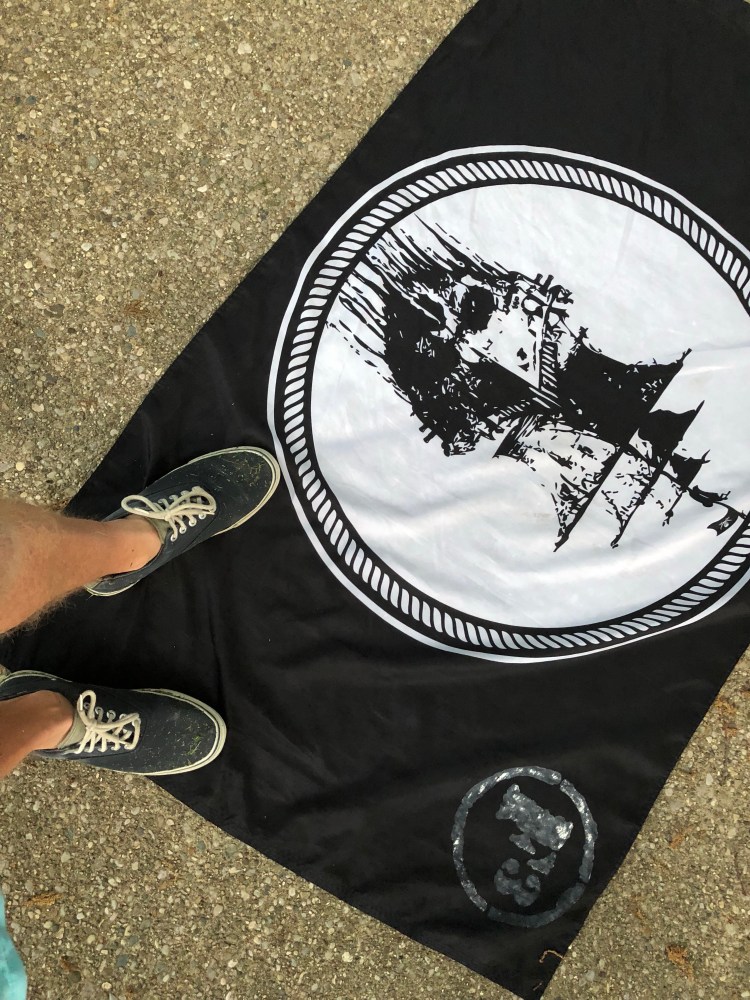 Today is already a success. Then I look over and see McAfee? Wow. What a surprise! I’ve not spent a ton of time with him either, but like Swifty-I’ve heard a lot about him, and have seen photos……I hear he’s a beast. Then a rush of anxiety poured over me… As I realized the awful truth. Swifty didn’t feel safe coming to the Mutt alone. He brought McAfee for back up. Dang. Ego deflation. Oh well. Can’t say that I blame him. But, I’m really glad he brought McaFee! Because Mac had something in his hand…Was it a baseball bat for protection? Nah… a sword?…nah…..a gift? Yes! A gift. Can this get any better? It was a flag of some sort. A Flag I had not seen in months… A flag that (and yes–we surveyed) 7 Mutt pax had never even seen in their entire F3 lives. It was… In fact… THE Ghost flag! A tear hit my eye. I hadn’t seen that baby in quite some time. Still smelled like Icy Hot. Wow. I can’t believe she’s here. I knew my milkshake was good…but….Wow. I thought ghosty was just permanently framed in Star Child’s office next to his daughter’s participation trophies.