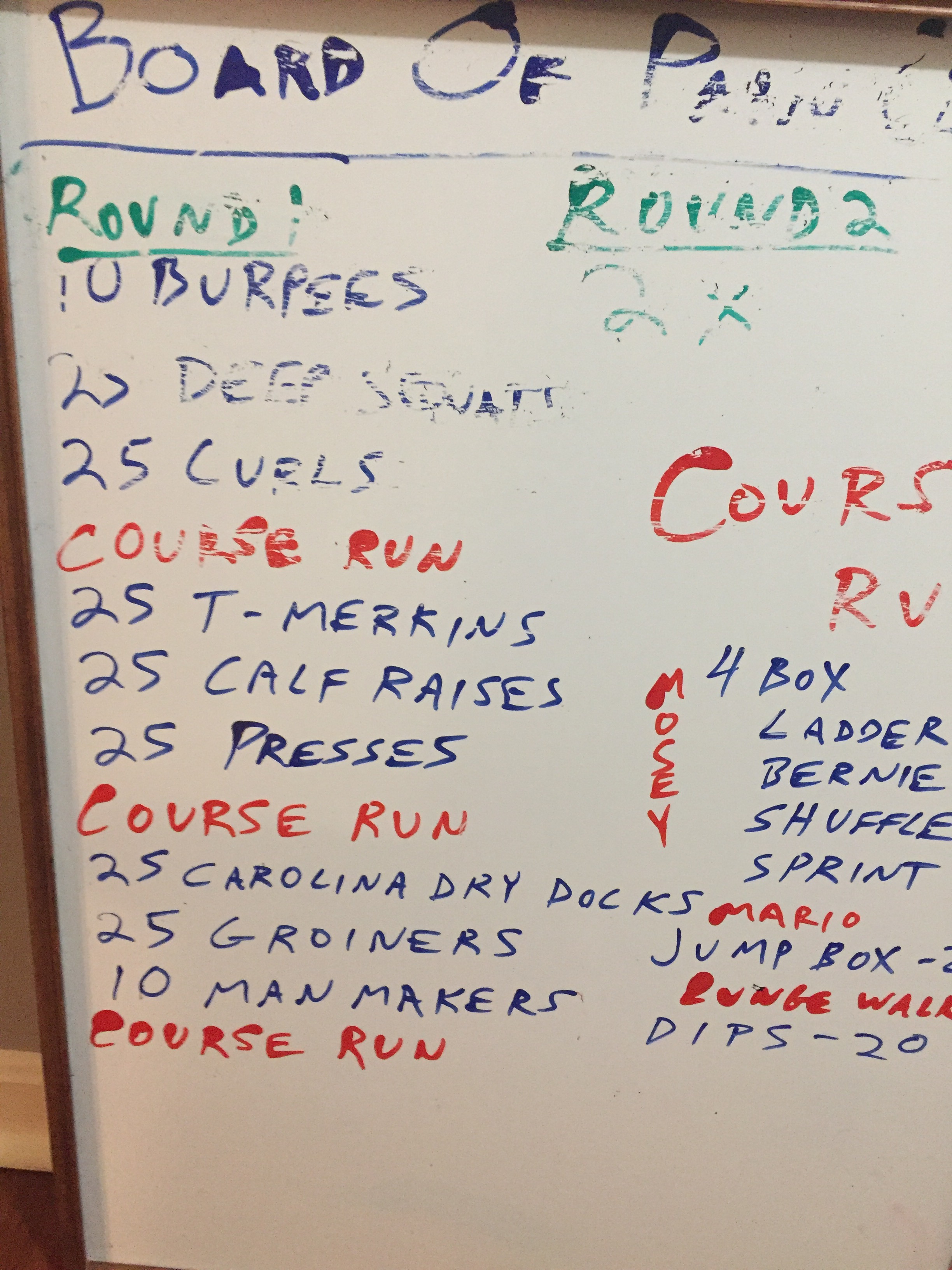 Board of Pain with the Course Run – 4 box, Box Jump, Lunge Dips