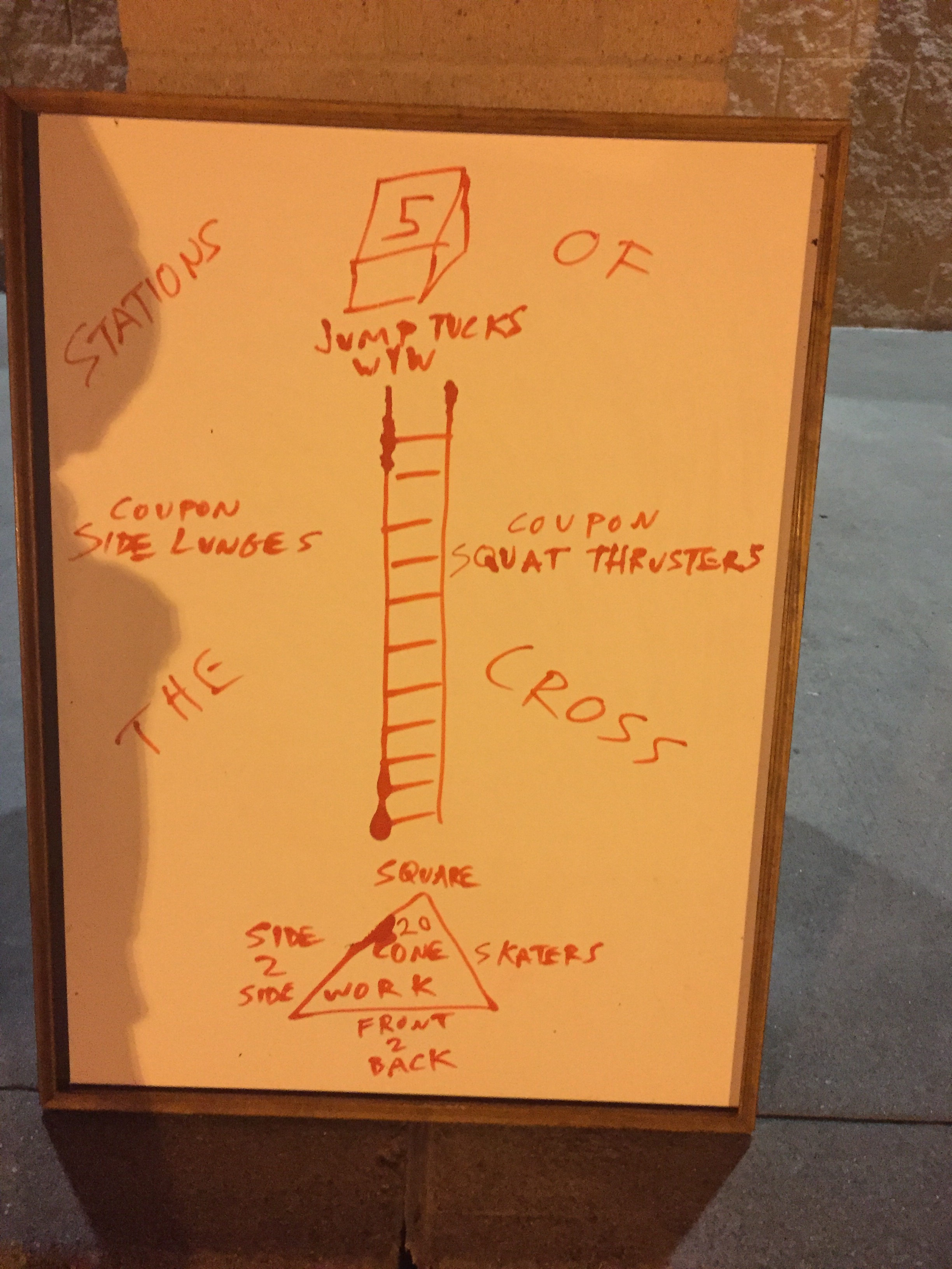 I arrived early to set up my Stations of the Cross with my jump box, agility ladder, cones and a few coupons. I was enjoying the peace and quiet of the gloom. I reflected on how proud I was to get up early and workout. I’ve been working hard to improve my diet and my fitness. Then came 3 HIM enjoying some conversation after a 3 mile Ruck this morning at 4:30. TClaps to Plumb Bob, Huggies and Snowman. No matter where you are in life there’s always room for improvement and there’s always someone or something out there to drive you to be better. My inspiration this morning was the 3 HIMs getting up early to get their RUCK on!