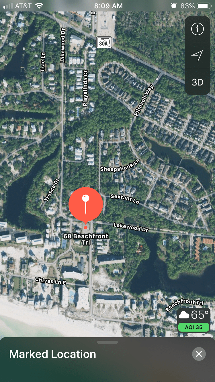 where: parking lot at corner of Lakewood Drive and Beachfront Tr, Santa Rosa Beach, FL.