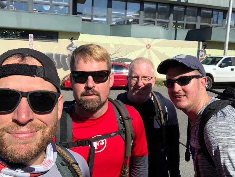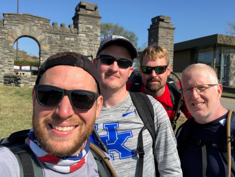 Toward the end I was moving as fast as I could and it wasn’t fast at all. After leaving town toward the park/Endex, it was all uphill again. The elevation gain coupled with the fact that 7 miles ago I thought we only had 4 miles left was hurting me mentally. With 2 miles left I was at the lowest point of the day negativity was kicking in and the hill was killing my knees. It was a damn long 2 miles. I felt bad because I couldn’t find the words to help motivate the team. I wasn’t talking, I was just in my head. The pain was getting to me. I had to keep going faster, the slower I walked, I felt like the pain would never end and it was getting more intense with every step. By that time during the longest 3 miles of my life Charlie started charging harder than he did the first 3 miles. He was now in that place I was a few hours ago. Finally we see the park but with a few of us having knee issues and the final clip being down a steep grade, we were slowly hobbling along. There it is! Mission Picnic Pavilion @ Shelby Park (~3.2mi)