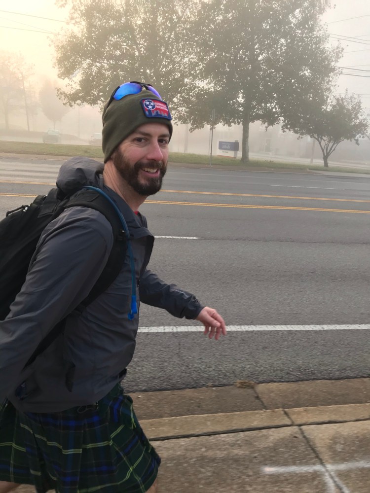 Still at a fast pace, on to the next. It was so cold, not only cold but the wind was blowing a lot. By mile 5-7 we were starting noticing a disturbing trend in the topography. Nashville is hilly ya’ll! Not steep grades but never flat. The constant up and downward slopes will wear on us hard as the miles piled up. Between checkpoint 1&2 we started to meet up with fellow Rucker’s we would see throughout the day. First was a couple, F3 and FIA Toledo, OH husband and wife team. Both were really cool HI-W/M’s. I hope hubby didn’t screw up since they had a 7 hour drive home π. Then was started passing really trendy shit. Orange theory, juice bars and fancy schools. Must be the NuLou of Nashville. About then we ran into a BA group from Nashville’s RuckStars. Dude was rucking in a Kilt w/no skivvies, somebody get him a Kilt Ruck patch already! Also, they placed 1st in the 26.