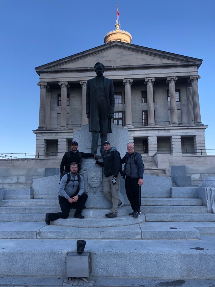 Anyway, on to the Capitol Building and the Carmack memorial. Edward Ward Carmack (November 5, 1858 β November 9, 1908) was an attorney, newspaperman and then US Senator from TN from 1901 to 1907. Pax did a little recon on the move to find the Statue location prior to arrival. Good strategy to prevent walking around that huge complex randomly, and it’s on a big hill. Extra steps there would be costly down the road. (~5.2mi)