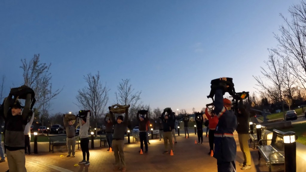 The 2022 Amazing Ruck Race was scheduled to begin on March 26, 2022, at the Jeffersontown Veteran’s Memorial Park. Excitement was in the air, as participants began showing up at 7:15. Not sure if the buzz that was in the air was felt by everyone but it was palpable. As individuals walked up cones were set out in front of the memorial between the benches that ensured people had a place to workout and organize some of the chaos that was about to unfold.
