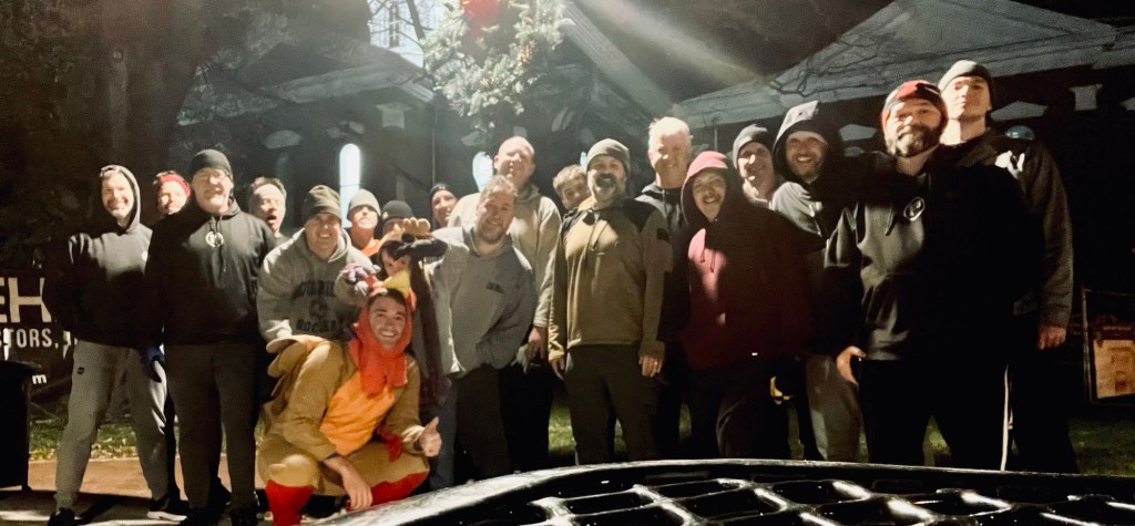Year 3 of the F3 Turkey Trott and I still find it amazing guys will get up early to work hard and burn off the upcoming calories from Turkey Day. We started right on time with an exchange of fist bumps, Christmas music on high, and your Q dressed as a Turkey. Instant energy. Ready to go.