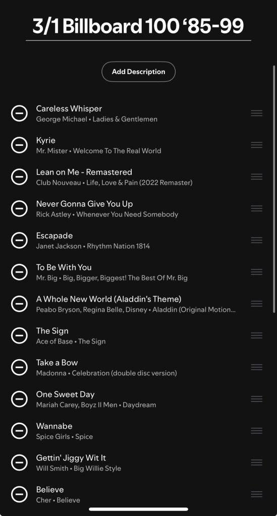 Tunes today was the Billboard 100 #1 song on March 1st of every year between 1985-2000.