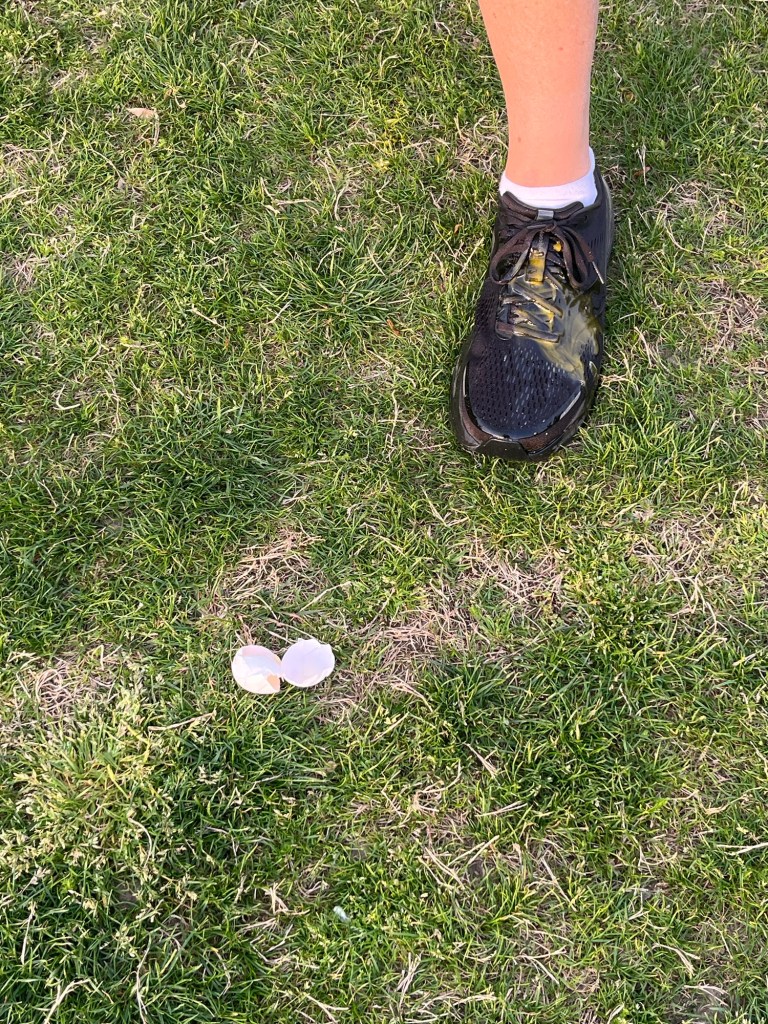 After COP, we broke into four teams. Each team would loop around the school get one egg, ran back to the starting spot and triple the exercise count and divide across the pax. It ended up with around 25 reps per exercise. After about 30 minutes of that we moved to the Easter Egg scavenger hunt.