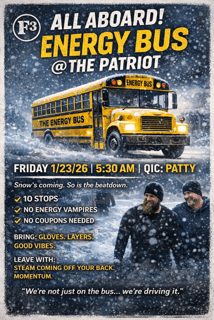 The Energy Bus is pulling into The Patriot—no brakes, no vampires, no excuses.